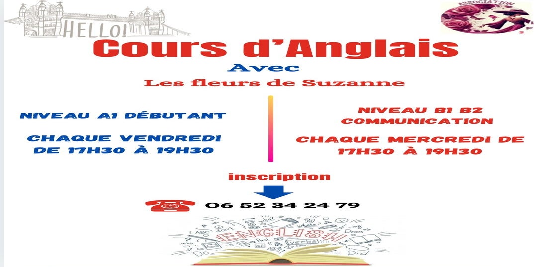 L’Association Fleurs de Suzanne vous propose des cours d’anglais dynamiques et adaptés à votre niveau, que vous soyez débutant ou déjà à l’aise à l’oral.